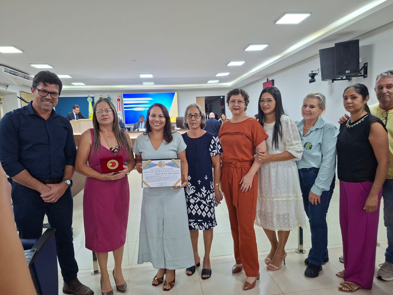 Durante a cerimônia, Maria Almeida agradeceu ao vereador Magno dos Santos Almeida pela autoria da moção e estendeu o reconhecimento a todos os vereadores, ressaltando a importância da parceria com o Legislativo. Ela também destacou o papel da coordenadora municipal do programa, professora Delzeir Maria da Silva, integrante da Rede Nacional de Articulação de Gestão, Formação e Mobilização (RENALFA), além da contribuição essencial dos professores da educação infantil.