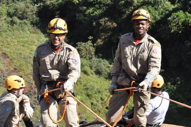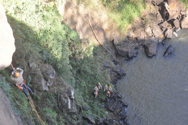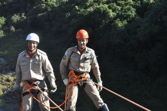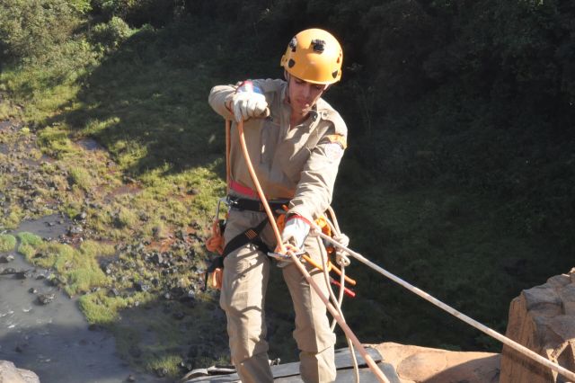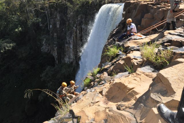 Os militares do Corpo de Bombeiros realizaram treinamentos com o uso de rapel nas cachoeiras do rio