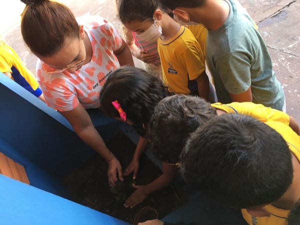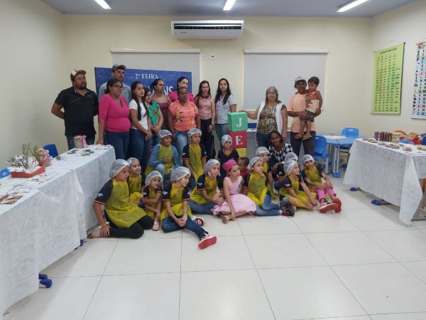 Alunos da Escola Municipal Belonizia Paulino de Oliveira, em Costa Rica, expõem produtos desenvolvidos em sala de aula
