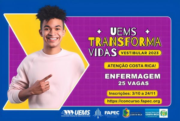 Com 25 vagas para enfermagem em Costa Rica, inscrições para vestibular da UEMS seguem até dia 24