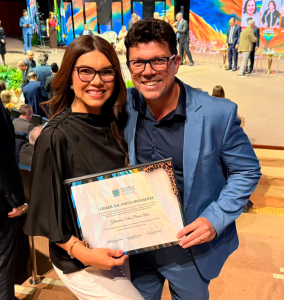 Na última quarta-feira, 29 de outubro de 2025, a primeira-dama e secretária de Políticas Públicas para Mulheres de Costa Rica, Márcia Alves, foi uma das 134 personalidades homenageadas com o título de Cidadã Sul-Mato-Grossense a mais alta honraria concedida pela Assembleia Legislativa de Mato Grosso do Sul (ALEMS). A cerimônia de outorga aconteceu no auditório Manoel de Barros, no Centro de Convenções Rubens Gil de Camilo, em Campo Grande. A solenidade reuniu representantes de diversas áreas que, por meio de suas ações e decisões, têm contribuído significativamente para o desenvolvimento do estado, reconhecido por sua rica história, cultura e tradição. Márcia Alves foi indicada ao título pelo deputado estadual Roberto Hashioka Soler, com articulação da deputada estadual Lia Nogueira. Natural de Itamaraju, na Bahia, ela chegou a Mato Grosso do Sul em 2010 e, desde então, tem se dedicado a causas sociais no município de Costa Rica. Desde 2021, atua como primeira-dama e, a partir de 2022, assumiu a Secretaria de Políticas Públicas para Mulheres, onde tem liderado iniciativas voltadas ao enfrentamento da violência doméstica e à promoção do empoderamento feminino. Durante a pandemia da Covid-19, Márcia esteve na linha de frente de ações sociais, contribuindo diretamente para o bem-estar da população local. Em 2022, foi agraciada com o Troféu Celina Jallad, concedido pelo então deputado estadual Barbosinha (atualmente vice-governador), em reconhecimento ao seu trabalho em defesa das mulheres. A cerimônia foi conduzida pelo presidente da ALEMS, deputado Gerson Claro, que destacou o papel transformador dos homenageados: “Esses homenageados representam um Mato Grosso do Sul que quer voar mais alto.” O governador Eduardo Riedel também prestou homenagem, ressaltando a diversidade e o compromisso dos agraciados com o progresso do estado. Entre os demais homenageados estavam a primeira-dama do estado, Mônica Riedel, que compartilhou sua trajetória em prol das mulheres, e o padre Luigi Favero, que comparou a política ao sacerdócio, enfatizando o valor do serviço público. O Título de Cidadão Sul-Mato-Grossense é destinado a pessoas nascidas fora do estado que impactaram positivamente a vida da população sul-mato-grossense. A cerimônia também incluiu a entrega da Comenda do Mérito Legislativo, voltada a cidadãos nativos do estado. A ALEMS realiza duas sessões solenes por ano para conceder essas distinções, reafirmando seu compromisso com aqueles que ajudam a moldar o futuro de Mato Grosso do Sul. Perfil de Márcia Alves