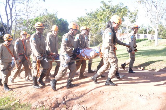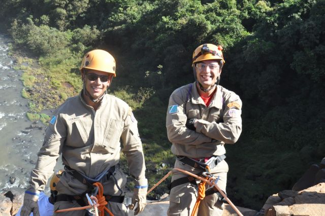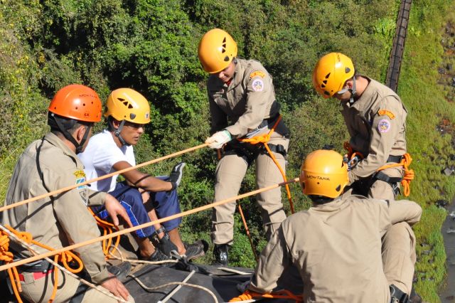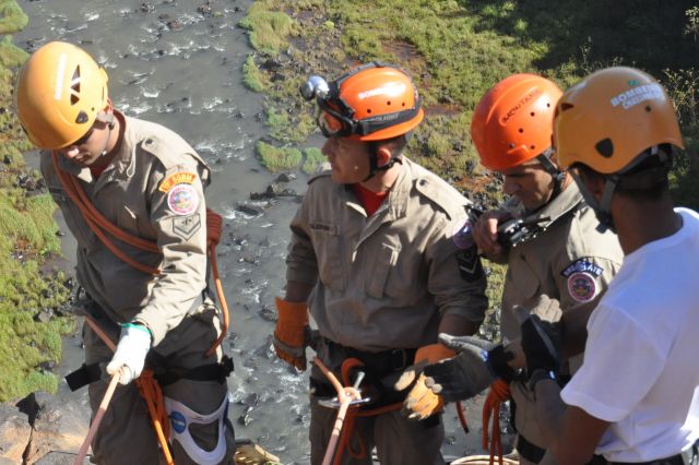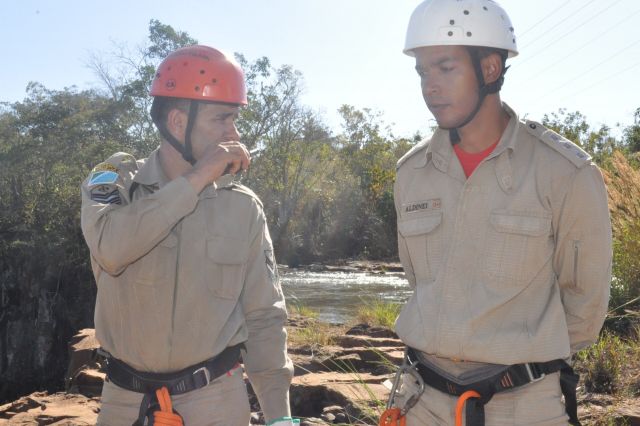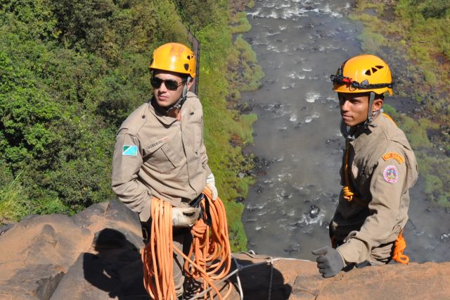 Os militares do Corpo de Bombeiros realizaram treinamentos com o uso de rapel nas cachoeiras do rio